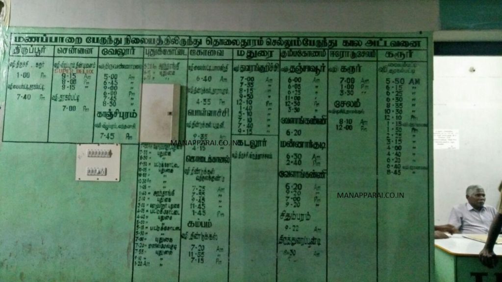 Manapparai to Salem Bus Timing மணப்பாறை – சேலம் ( வழி முசிறி , நாமக்கல் ) நேரம் R.S 6.20 A.M மணப்பாறை – தர்மபுரி ( வழி முசிறி , நாமக்கல் , சேலம் ) நேரம் R.S 12.00 P.M It's only fair to share...FacebookTwitterLinkedin