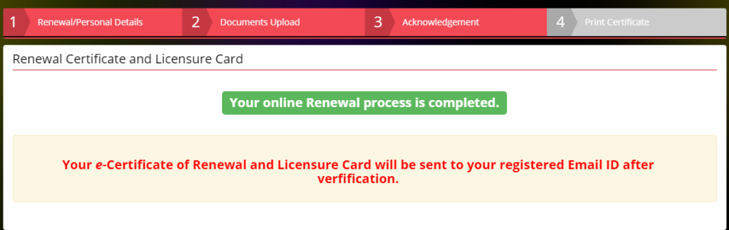 8. Renewal process is completed at this step and you can print your Certificate and ID Card online.